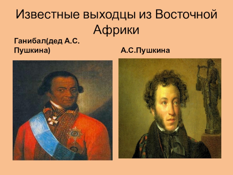 Известные выходцы из Восточной АфрикиГанибал(дед А.С.Пушкина)А.С.Пушкина