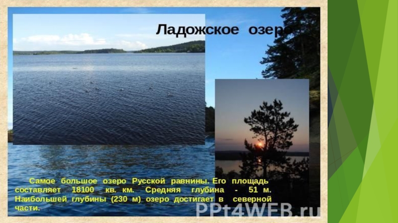 Крупнейшими озерами равнины являются: Ладожское, онежское, Чудское