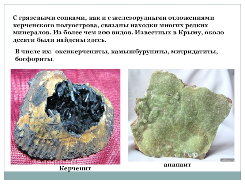 Слайд 11С грязевыми сопками, как и с железорудными отложениями керченского полуострова, связаны