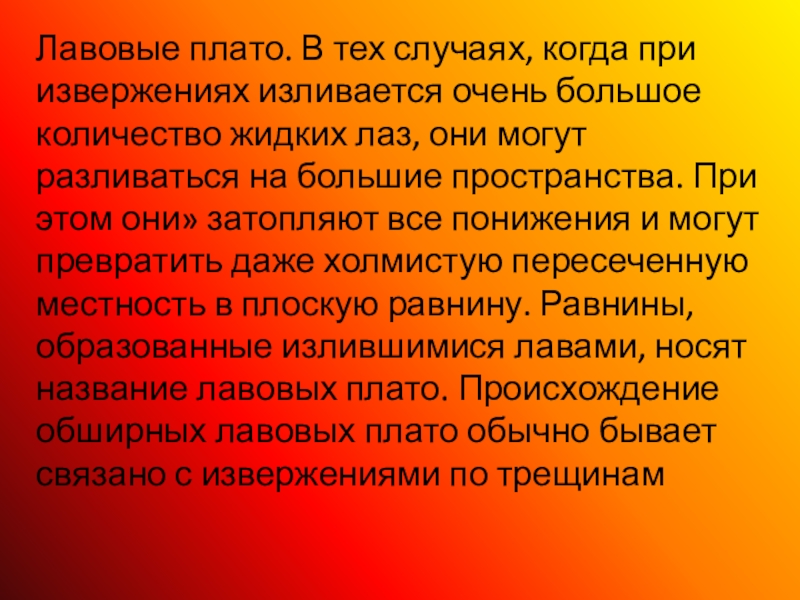 Слайд 13Лавовые плато. В тех случаях, когда при извержениях изливается очень большое