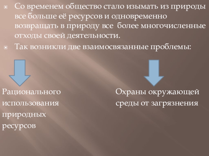 Слайд 11Со временем общество стало изымать из природы все больше её ресурсов