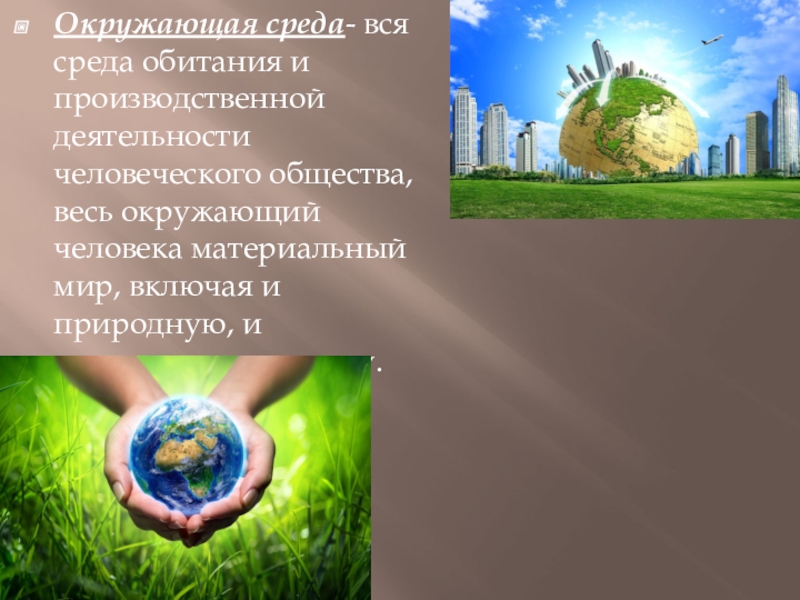 Слайд 5Окружающая среда- вся среда обитания и производственной деятельности человеческого общества, весь