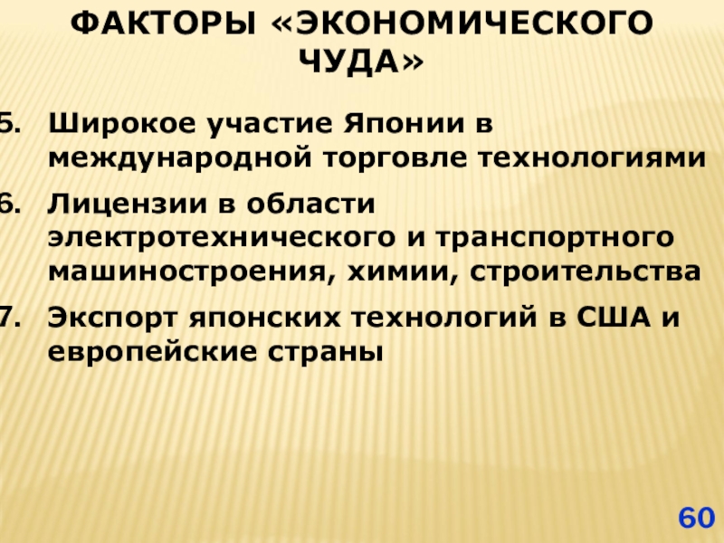 Слайд 60ФАКТОРЫ «ЭКОНОМИЧЕСКОГО ЧУДА»