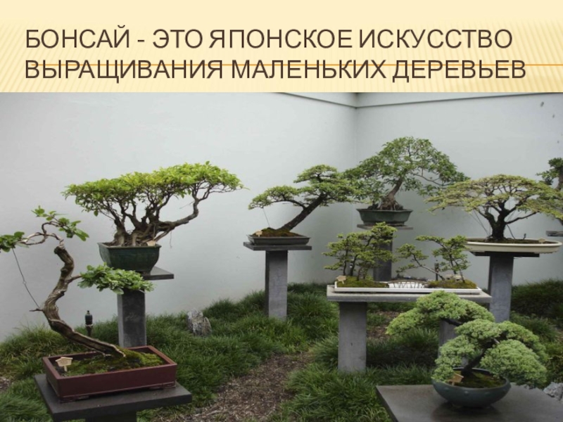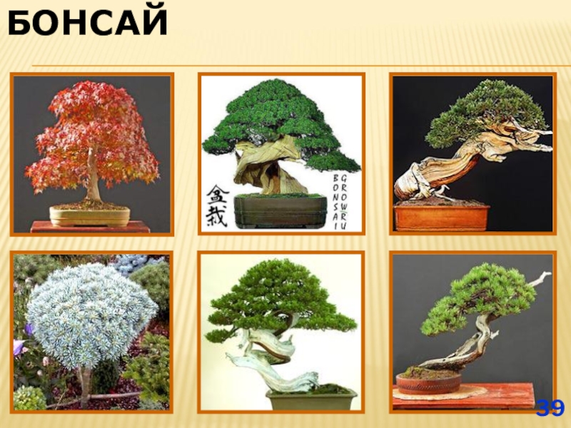 Слайд 38БОНСАЙ - ЭТО ЯПОНСКОЕ ИСКУССТВО ВЫРАЩИВАНИЯ МАЛЕНЬКИХ ДЕРЕВЬЕВ