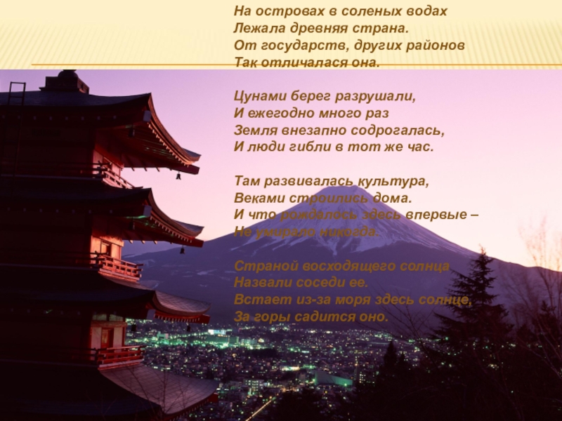 Японии – стране восходящего солнца.
