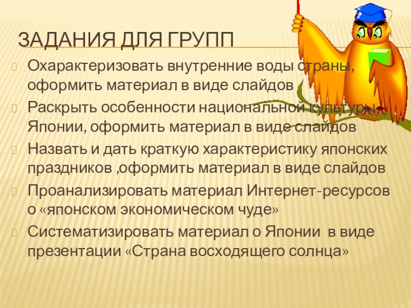 Слайд 13ЗАДАНИЯ ДЛЯ ГРУПП