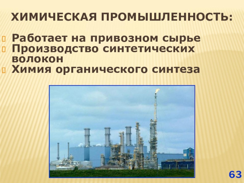 Слайд 63ХИМИЧЕСКАЯ ПРОМЫШЛЕННОСТЬ: