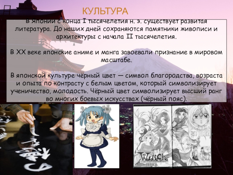 особенности национальной культуры Японии, оформить материал в виде слайдов