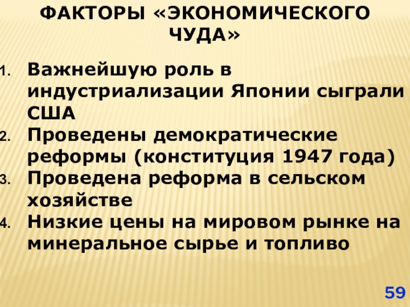 Слайд 59ФАКТОРЫ «ЭКОНОМИЧЕСКОГО ЧУДА»