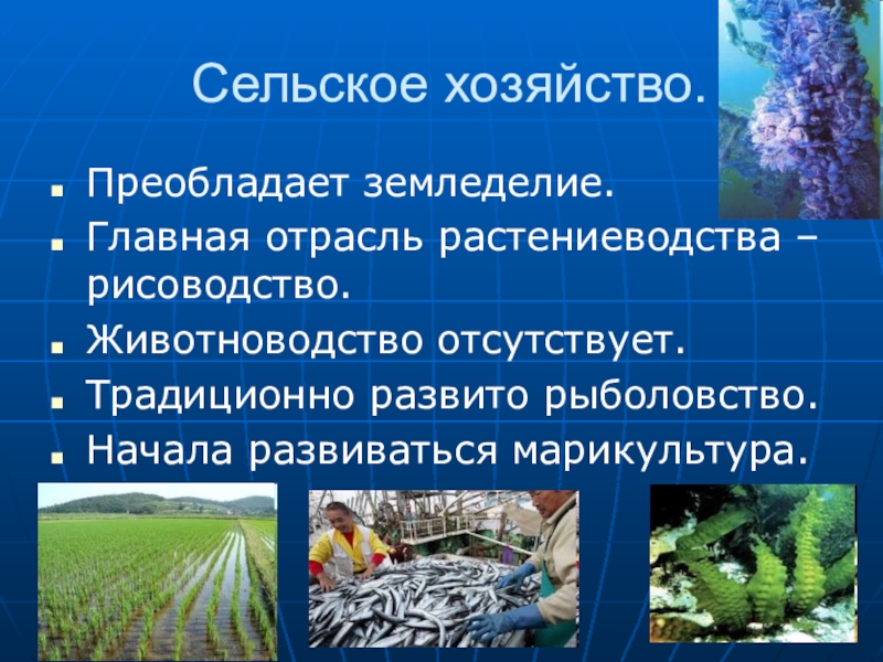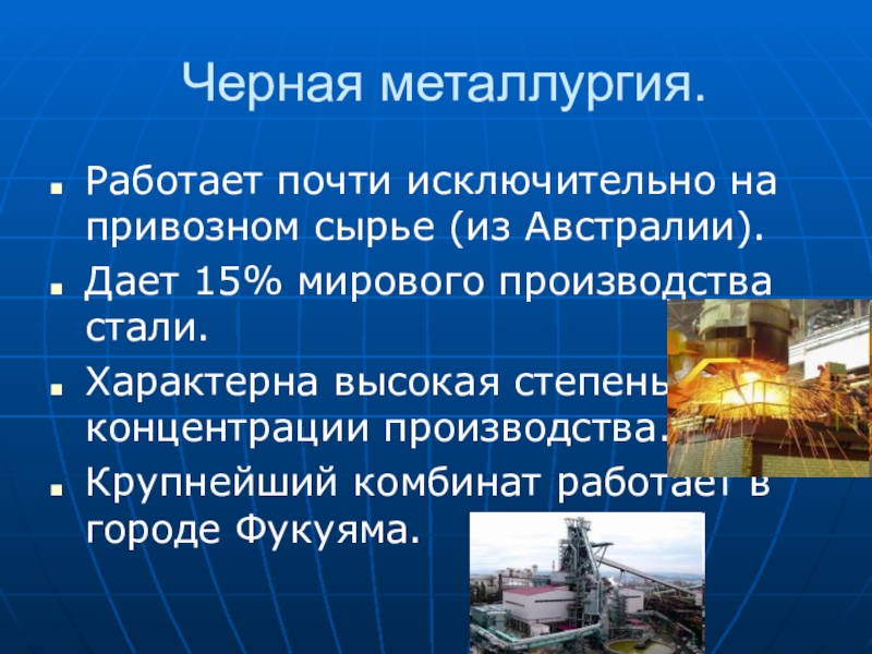 Япония – небольшие порты, развиты традиционные отрасли (текстильная, рыбная промышленность, кустарные промыслы).