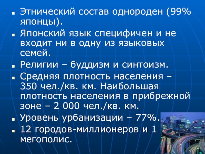 Япония – страна архепелаг, расположенная на 4-х крупных и 4-х тысячах мелких островов.