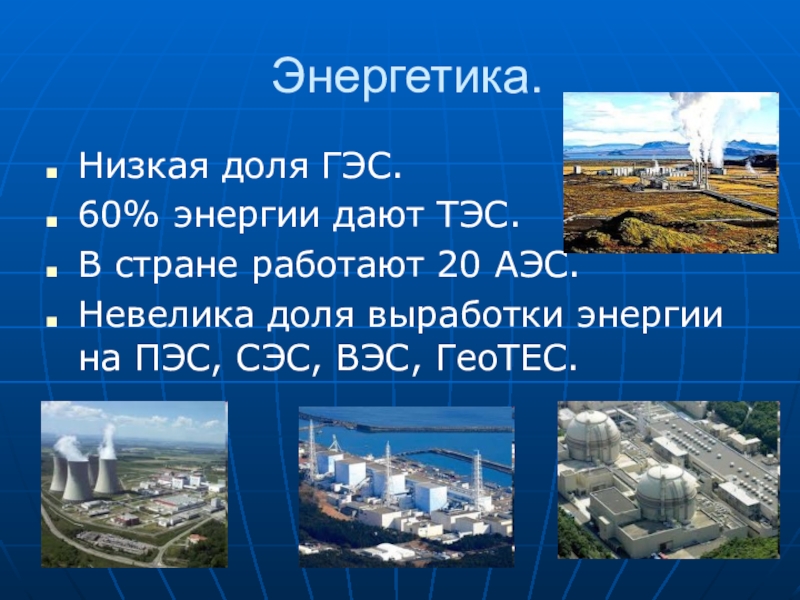 выработки энергии на ПЭС, СЭС, ВЭС, ГеоТЕС.