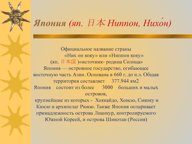 (яп. 日本国 )«источник- родина Солнца»