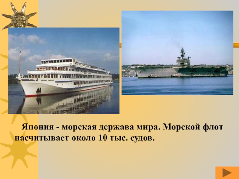 Слайд 56 Япония - морская держава мира. Морской флот насчитывает около 10