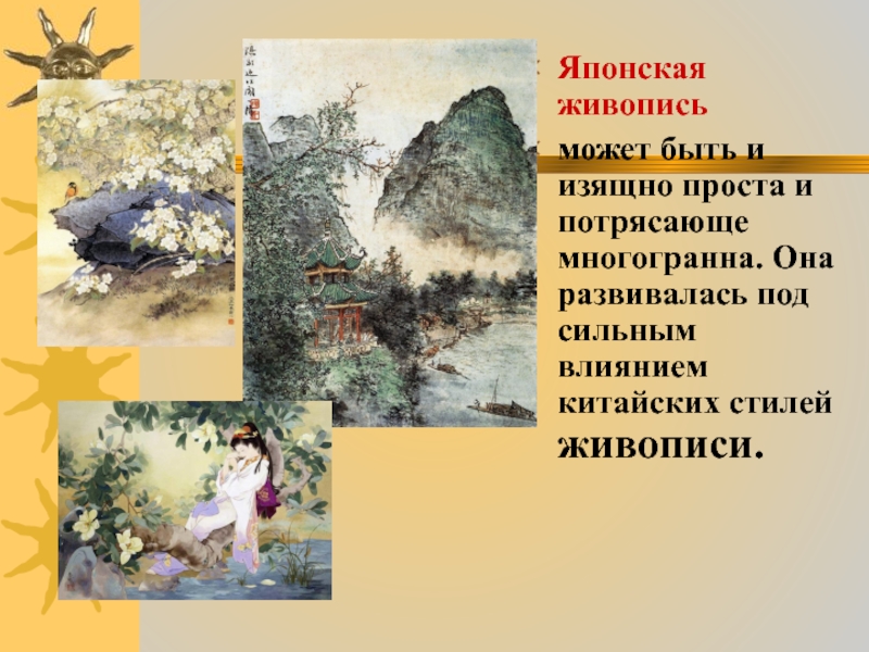 развивалась под сильным влиянием китайских стилей живописи.