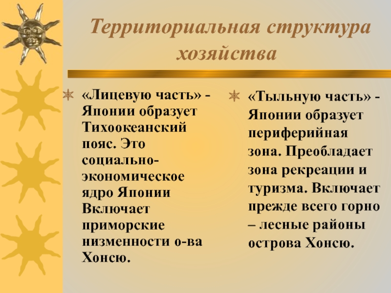 «Лицевую часть» -Японии образует Тихоокеанский пояс. Это социально-