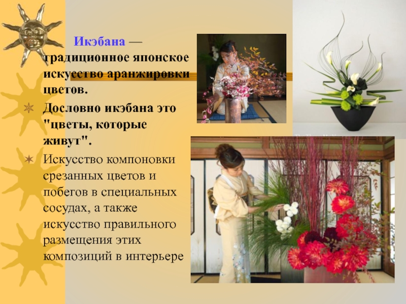 Искусство компоновки срезанных цветов и побегов в специальных сосудах, а также искусство правильного размещения этих композиций в интерьере