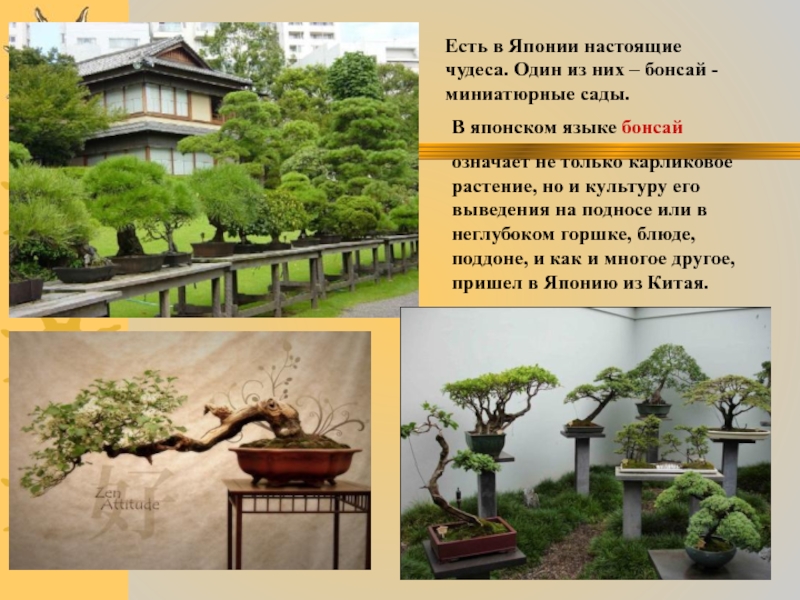 означает не только карликовое растение, но и культуру его выведения на подносе или в неглубоком горшке, блюде, поддоне, и как и многое другое, пришел в Японию из Китая.