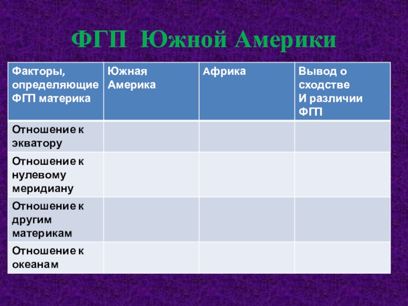 Слайд 13ФГП Южной Америки