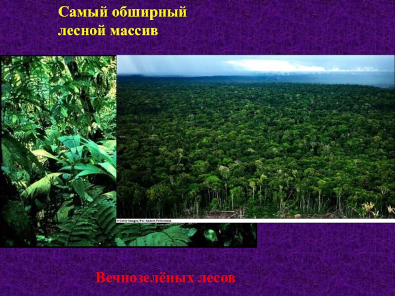 Самый обширный лесной массивВечнозелёных лесов