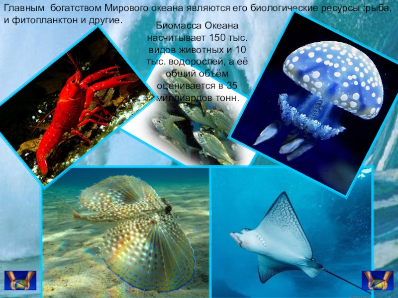 Биомасса Океана насчитывает 150 тыс. видов животных и 10 тыс. водорослей, а её общий объём оценивается в 35 миллиардов тонн.