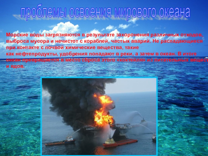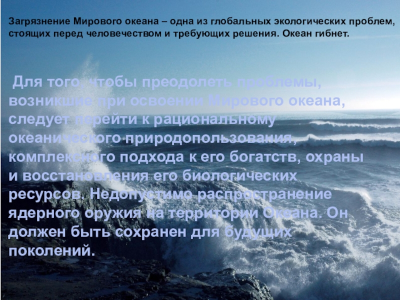Загрязнение Мирового океана – одна из глобальных экологических проблем, стоящих перед человечеством и требующих решения. Океан гибнет.