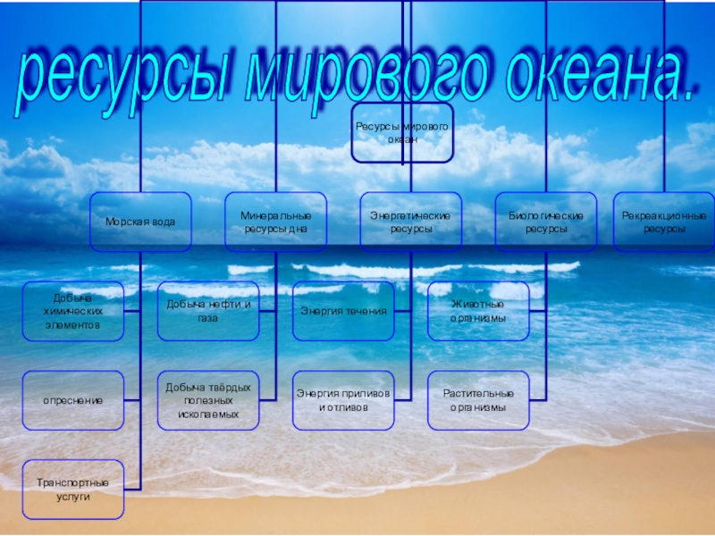 Энергетические ресурсы. Океан - гигантский аккумулятор и трансформатор солнечной энергии, преобразуемой в энергию течений, тепла и ветров.