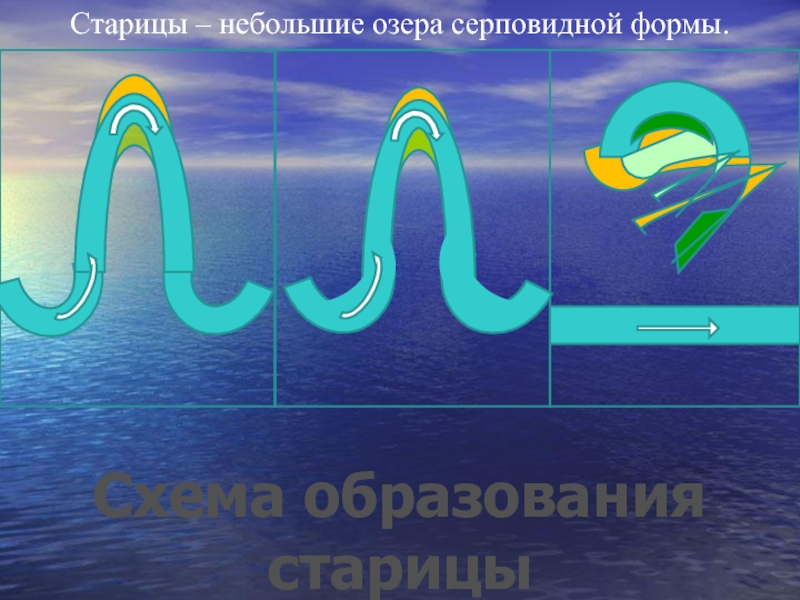 Схема образования старицыСтарицы – небольшие озера серповидной формы.