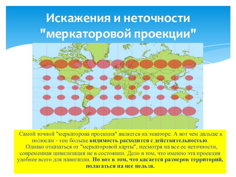 Однако и у карты Петерса есть некоторый ряд искажений. Африканский, Азиатский и Южно Американский континенты стали реальными гигантами, подросли и Соединенные Штаты Америки, а вот Европа значительно уменьшилась.