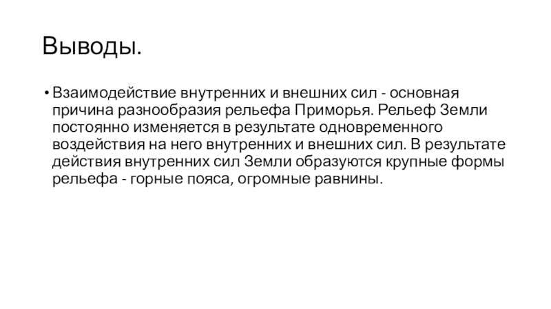 Взаимодействие внутренних и внешних сил - основная причина разнообразия рельефа Приморья.