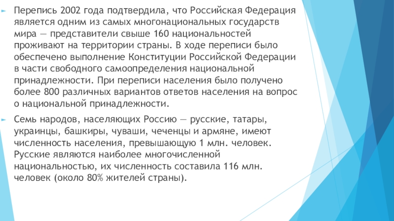 Слайд 2Перепись 2002 года подтвердила, что Российская Федерация является одним из самых