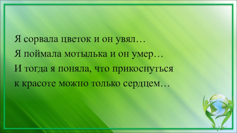 Слайд 25«Самое прекрасное в природе-присутствие человека»