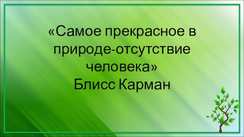 Слайд 1«Самое прекрасное в природе-отсутствие человека» Блисс Карман