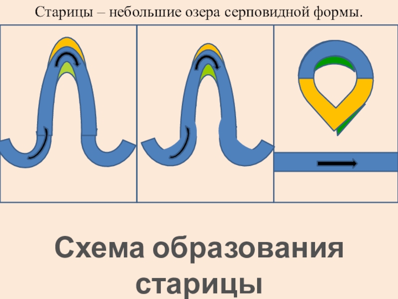 Схема образования старицыСтарицы – небольшие озера серповидной формы.