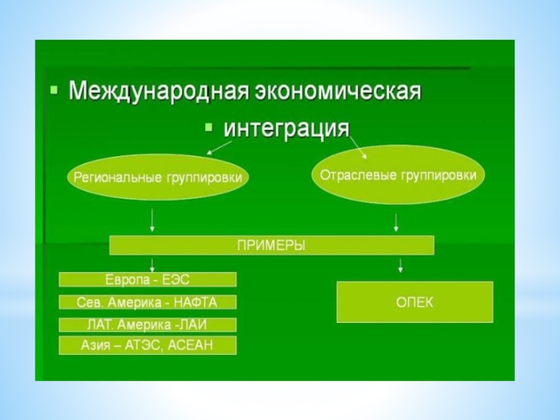 У всех этих ступеней, или видов, интеграции есть общая характерная особенность. Она состоит в том, что между странами, вступившими в тот или иной вид интеграции, устраняются определенные экономические барьеры.
