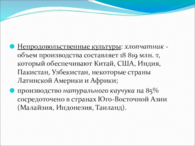 который обеспечивают Китай, США, Индия, Пакистан, Узбекистан, некоторые страны Латинской Америки и Африки;