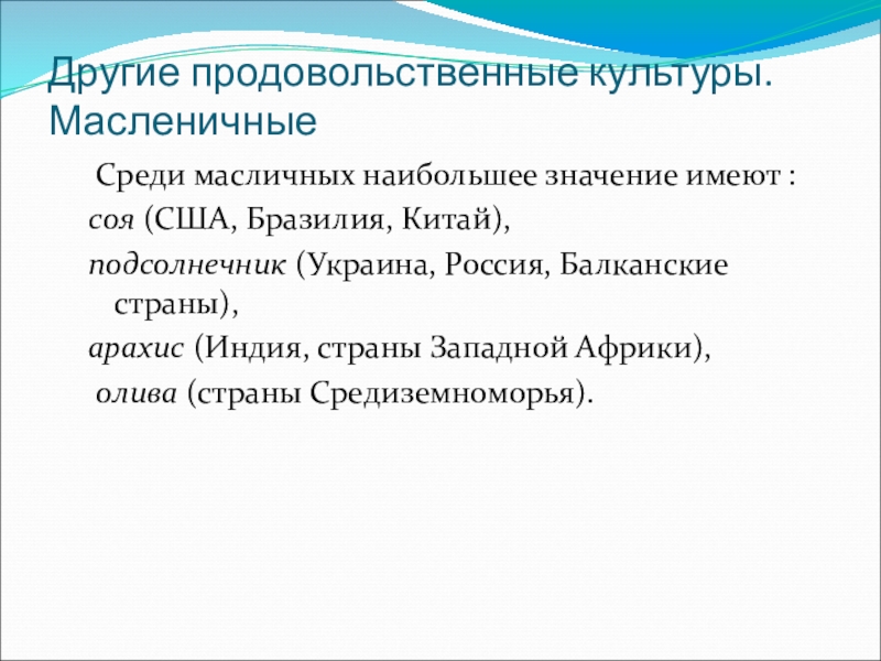 сахарный тростник (Бразилия, Куба, Индия, Китай),