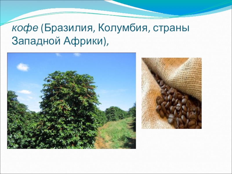 Слайд 43кофе (Бразилия, Колумбия, страны Западной Африки),