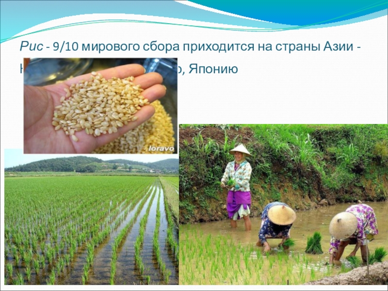 Слайд 30Рис - 9/10 мирового сбора приходится на страны Азии - Китай,