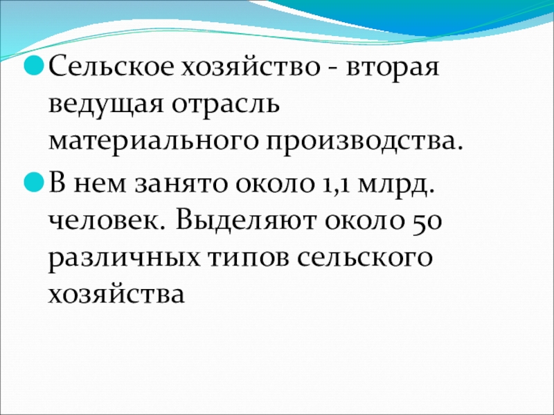 Слайд 2Сельское хозяйство - вторая ведущая отрасль материального производства.
