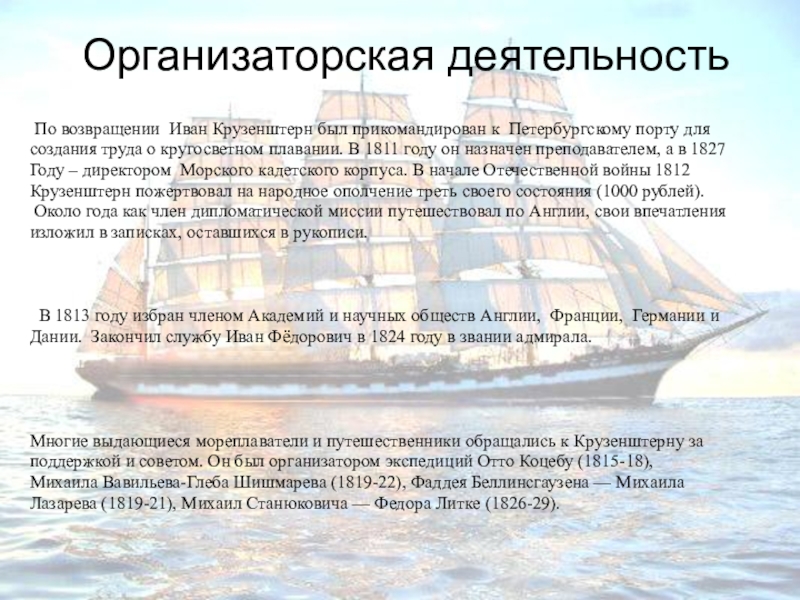 поддержкой и советом. Он был организатором экспедиций Отто Коцебу (1815-18),