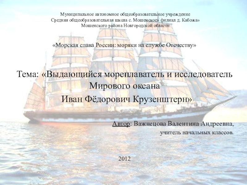 Тема: «Выдающийся мореплаватель и исследователь Мирового океана