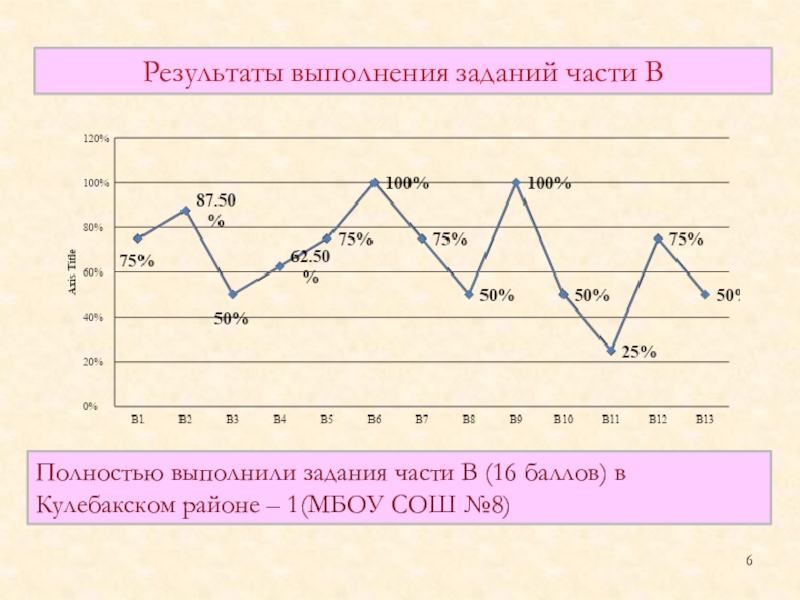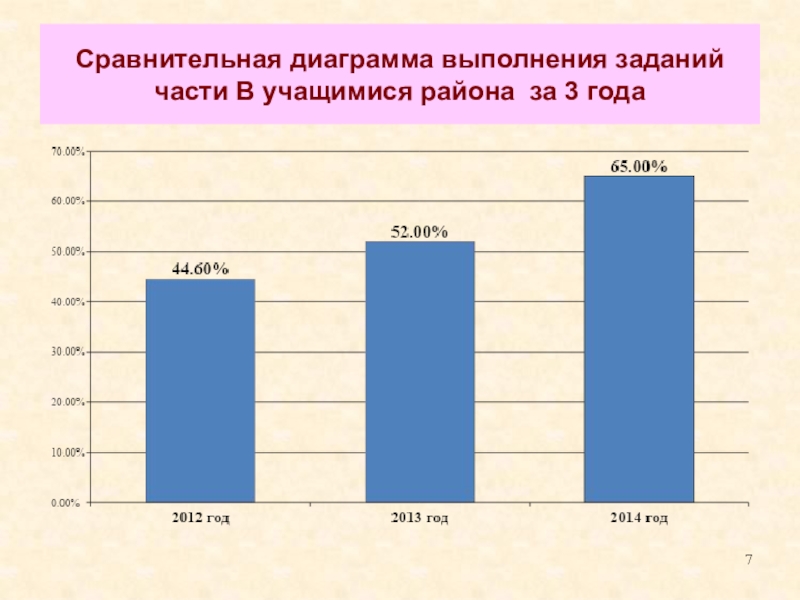 Слайд 7Сравнительная диаграмма выполнения заданий части В учащимися района за 3 года