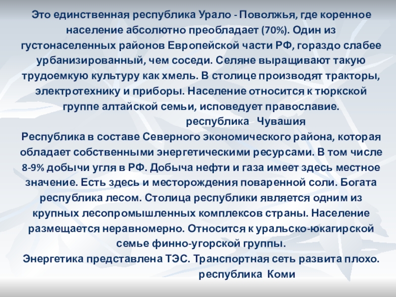 Слайд 30Это единственная республика Урало - Поволжья, где коренное население абсолютно преобладает