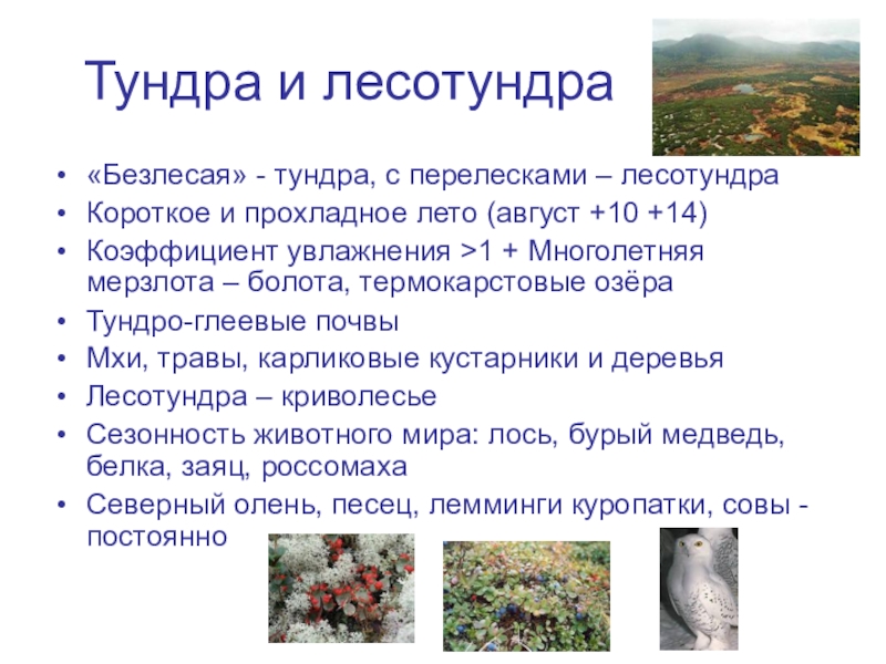 Северный олень, песец, лемминги куропатки, совы - постоянно