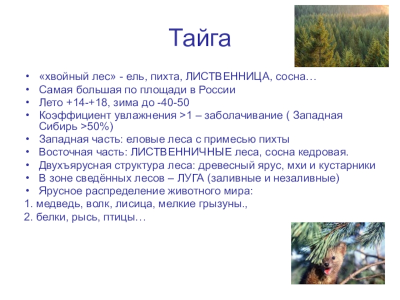 «хвойный лес» - ель, пихта, ЛИСТВЕННИЦА, сосна…