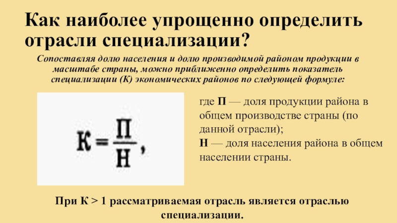 При К > 1 рассматриваемая отрасль является отраслью специализации.