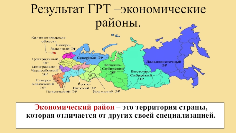 Экономические районы — территории, отличающиеся друг от друга своей специализацией.