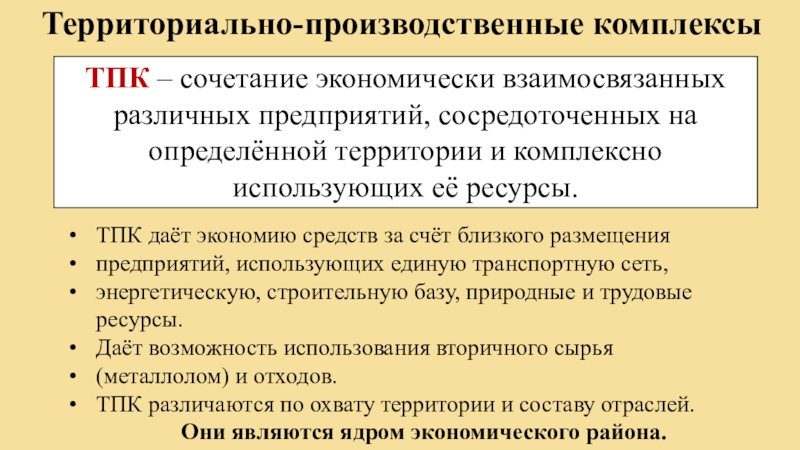 различных предприятий, сосредоточенных на определённой территории и комплексно использующих её ресурсы.