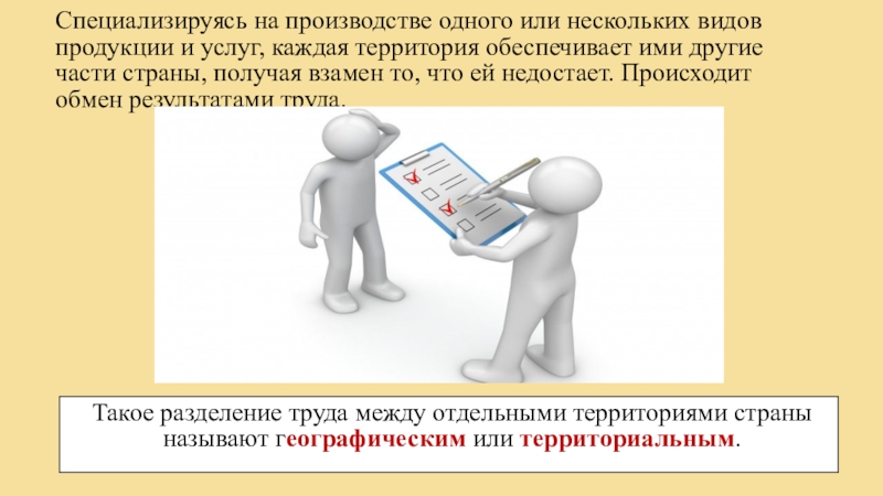 Такое разделение труда между отдельными территориями страны называют географическим или территориальным.